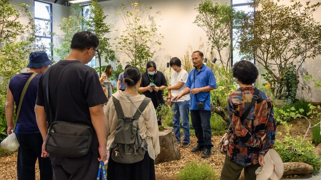 本次原生植物展的重要幕後功臣——OURA植物專用燈團隊。他們無償協助我們完成整個展覽的燈光配置。您可以注意到這裡光線柔和、層次分明,模擬自然林下光環境,讓植物呈現最真實的姿態,也讓觀者能以更舒適的感官體驗走入森林。這不僅是技術的支持,更體現了ESG精神與產學合作的典範。