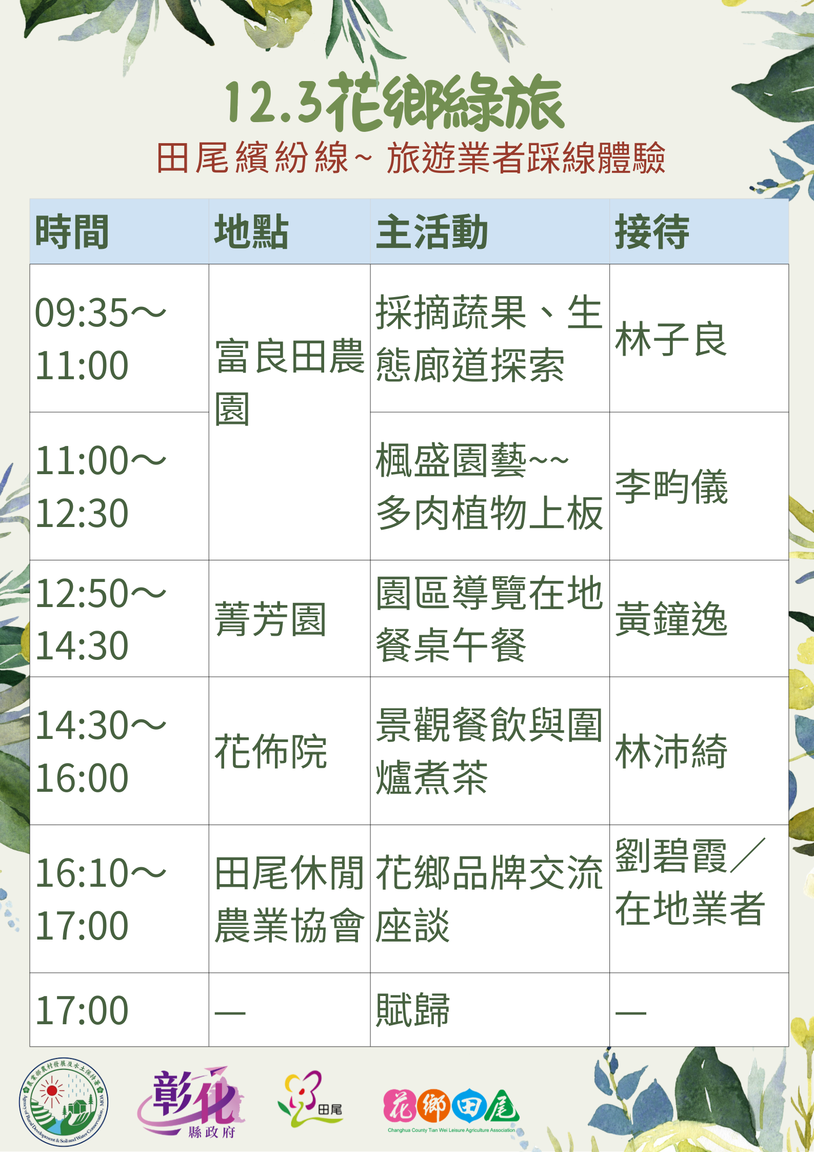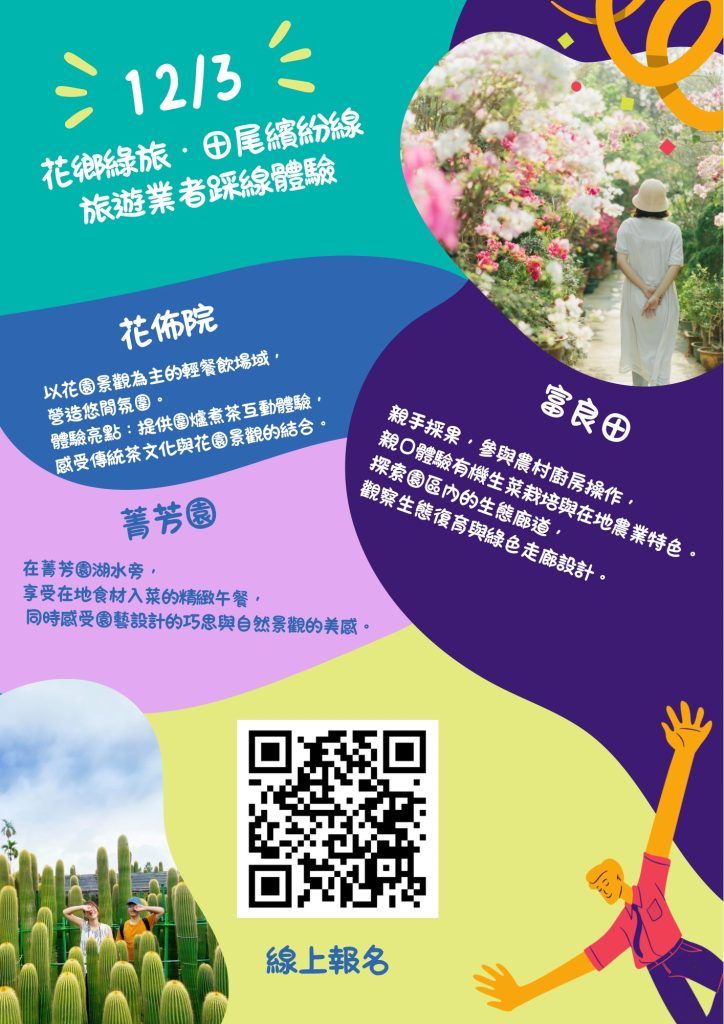 邀請田尾在地業者與旅遊夥伴進行對談,分享導覽、行銷與跨界合作的實例,共創「花鄉 綠旅」的新契機。