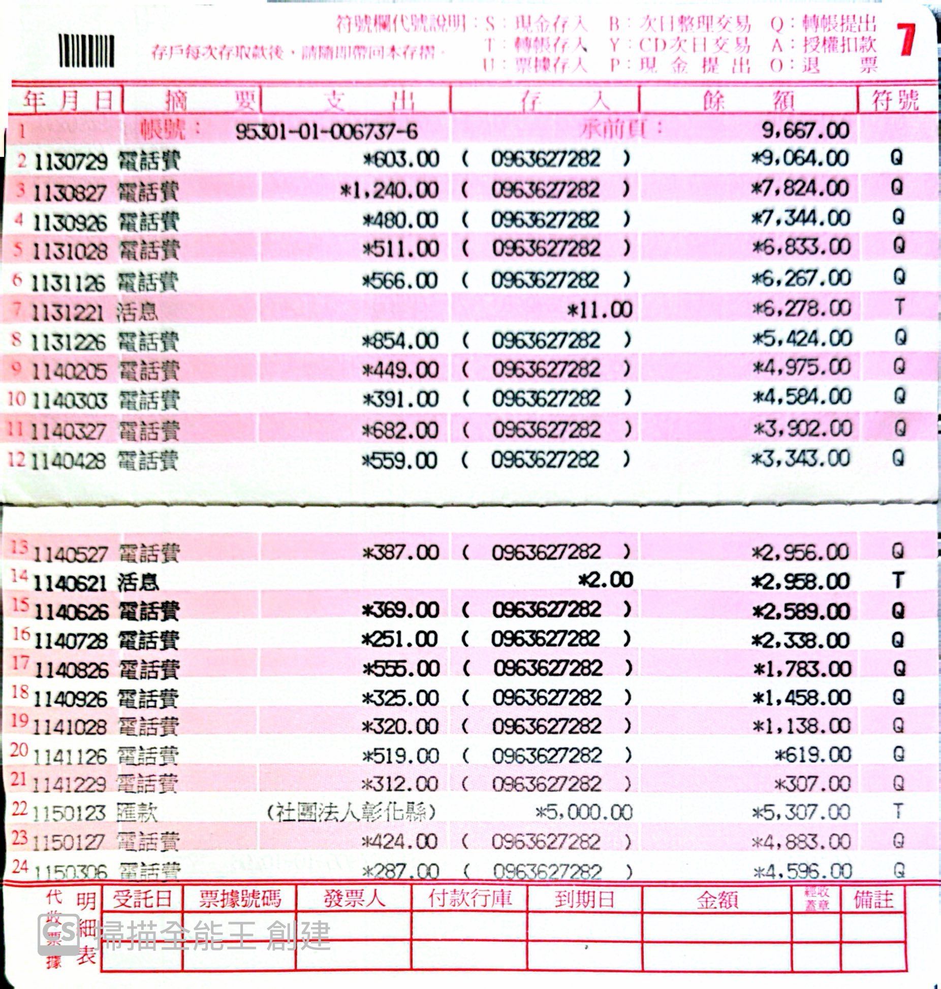 | 20260226 | 網轉 | 31240 | 0 | 170691 | 53 | 總幹事一月薪 |