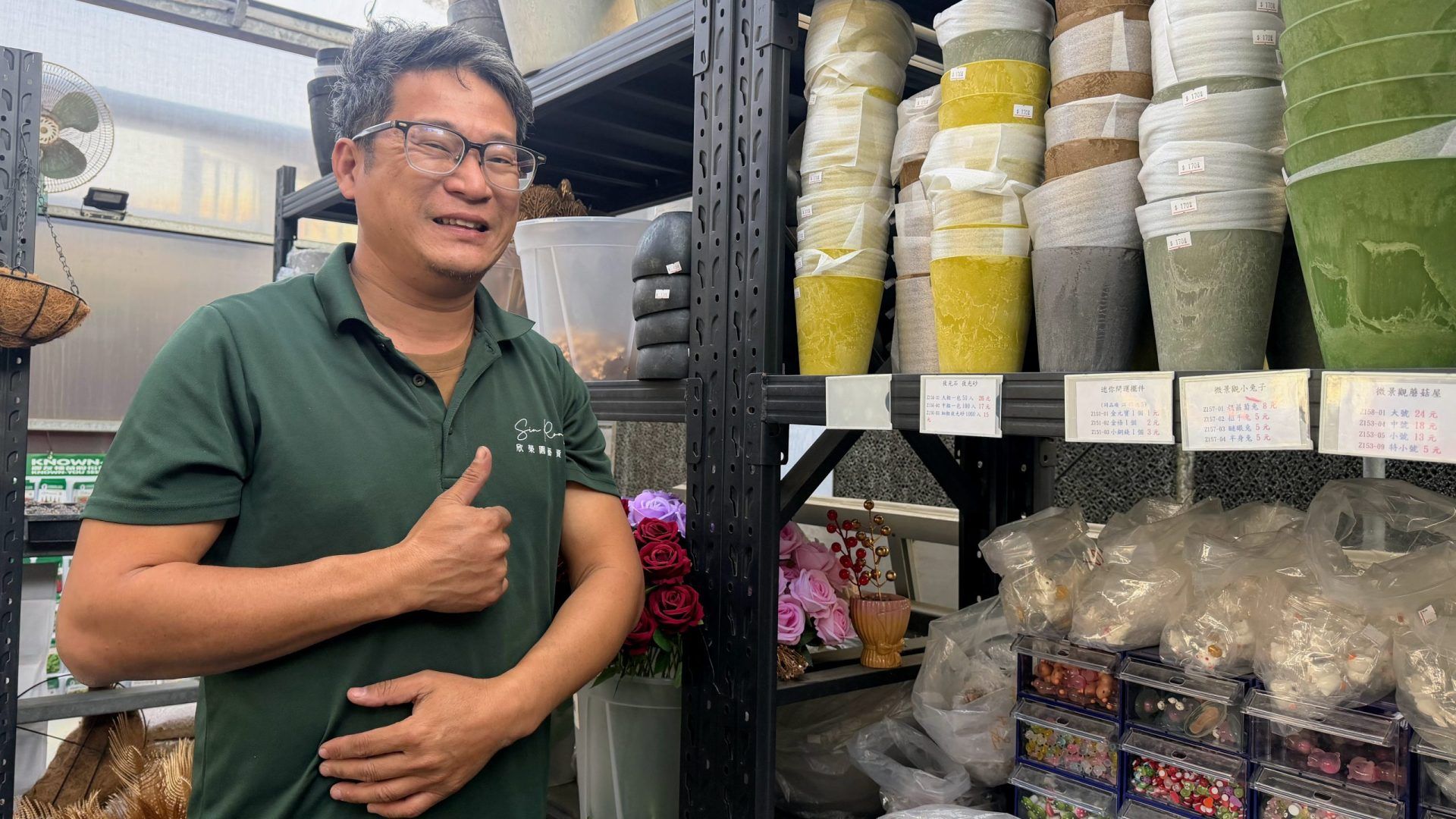 走進店內,各式盆器、鋪面石材、種子與家庭園藝資材一應俱全。然而真正讓人印象深刻的,不只是商品種類,而是老闆與老闆娘對產品細節的說明,以及站在顧客立場替對方思考的態度。他們強調:「不是把東西賣出去,而是幫客人把問題解決。」